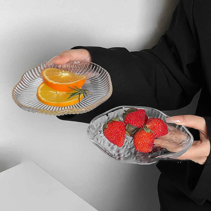 Creative Glass Condiment Dish Irregular Dip Saucer Household Simple Fruit Dessert Plate Afternoon Tea Pastry Disc