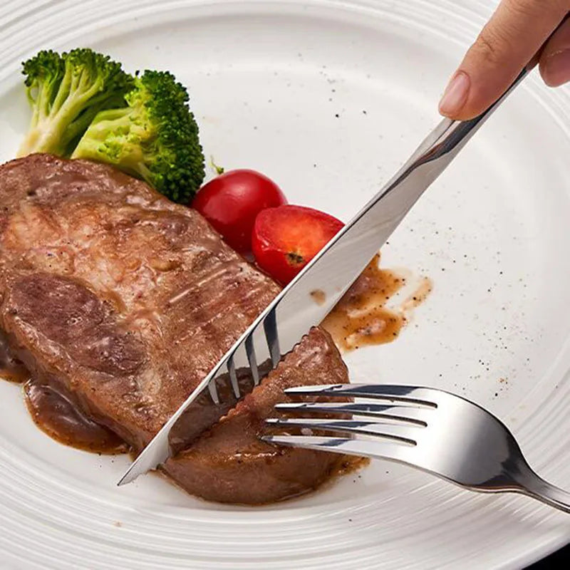 Stainless steel cutlery set is easy to use and clean. Your dishwasher is safe.