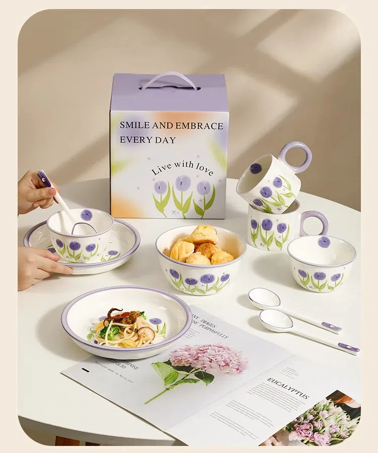 High-Gloss Finish: The glossy glaze not only enhances the visual appeal but also makes the set easy to clean. Simply wipe away stains, and your dishes will look as good as new.