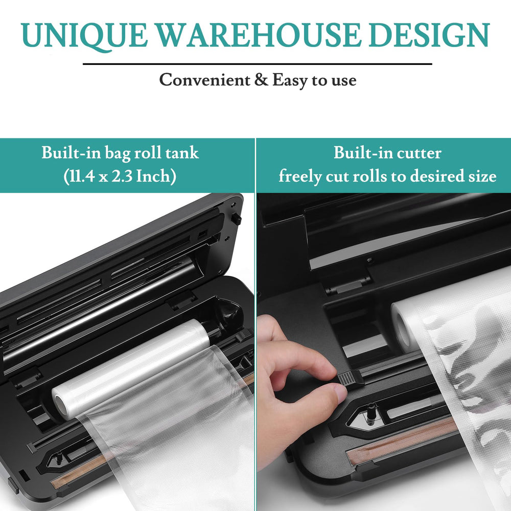 Kitchen Vacuum Sealer Machine, 4 in 1 Automatic Food Saver with Storage Bag Roll, Sous Vide Machine, Dry & Moist Food Modes, Stainless Steel Panel, Led Indicator Lights (Black)