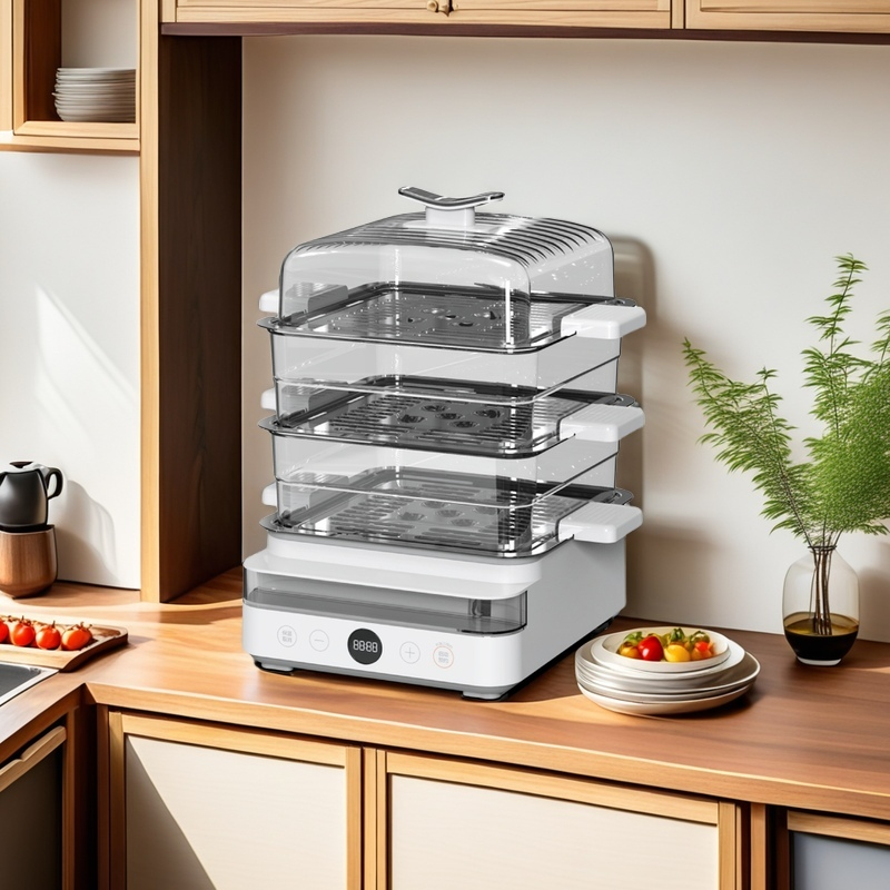 Digital Control Panel: Featuring a sleek digital control panel, you can easily adjust cooking time and temperature with precision, offering full control over your steaming process for perfect results.