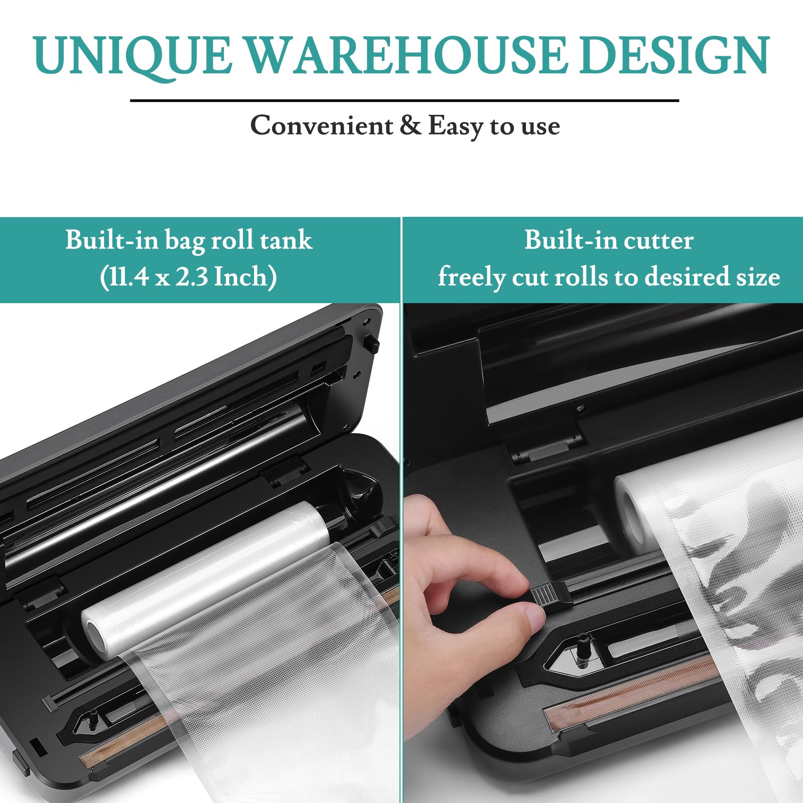 Includes Storage Bag Roll: Comes with a storage bag roll, providing flexibility for custom bag sizes and allowing you to vacuum seal various food portions easily.