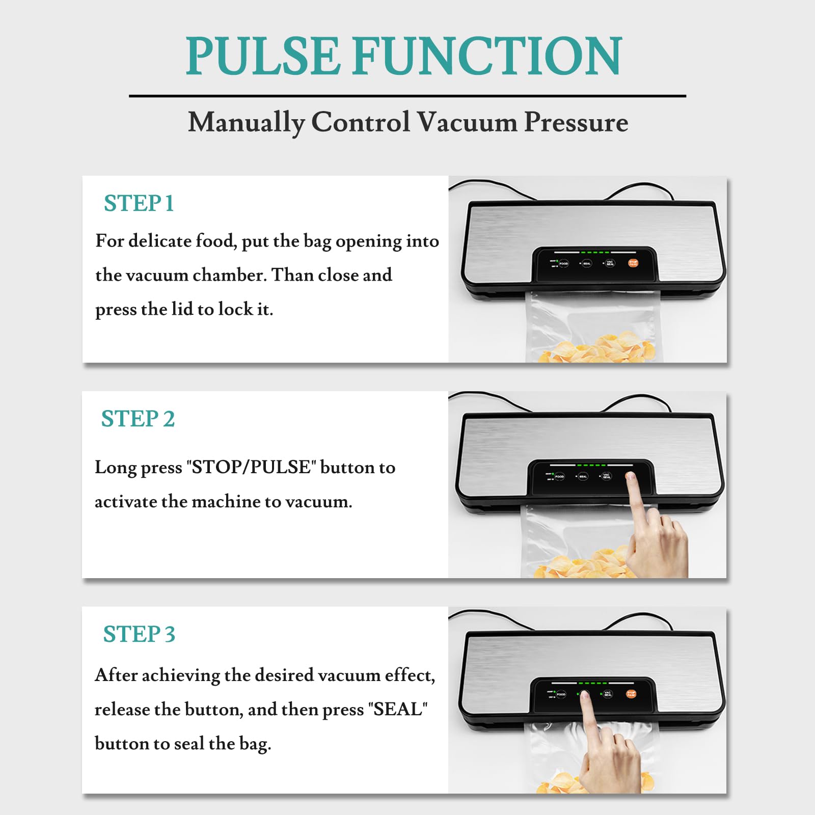 Premium Stainless Steel Construction: Made with a durable stainless steel panel, the vacuum sealer is designed for long-lasting performance and a sleek, modern look.