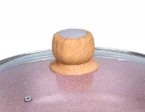 Elegant Design: Features a soft pink color and wooden handle with a unique wooden knob on the lid, bringing a touch of style to your kitchen.