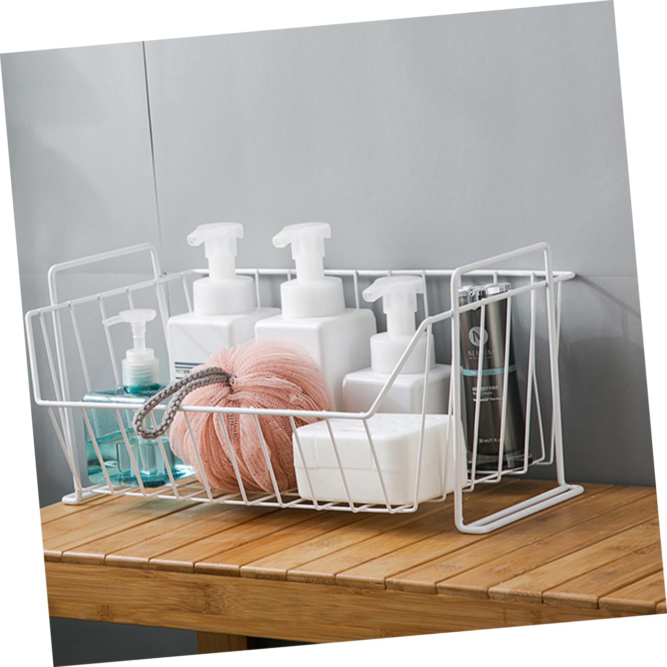 Storage Kitchen Rack Simple Wrought Iron Basket Desktop Wardrobe Clothes Storage Frame for Kitchen Organization(White)
