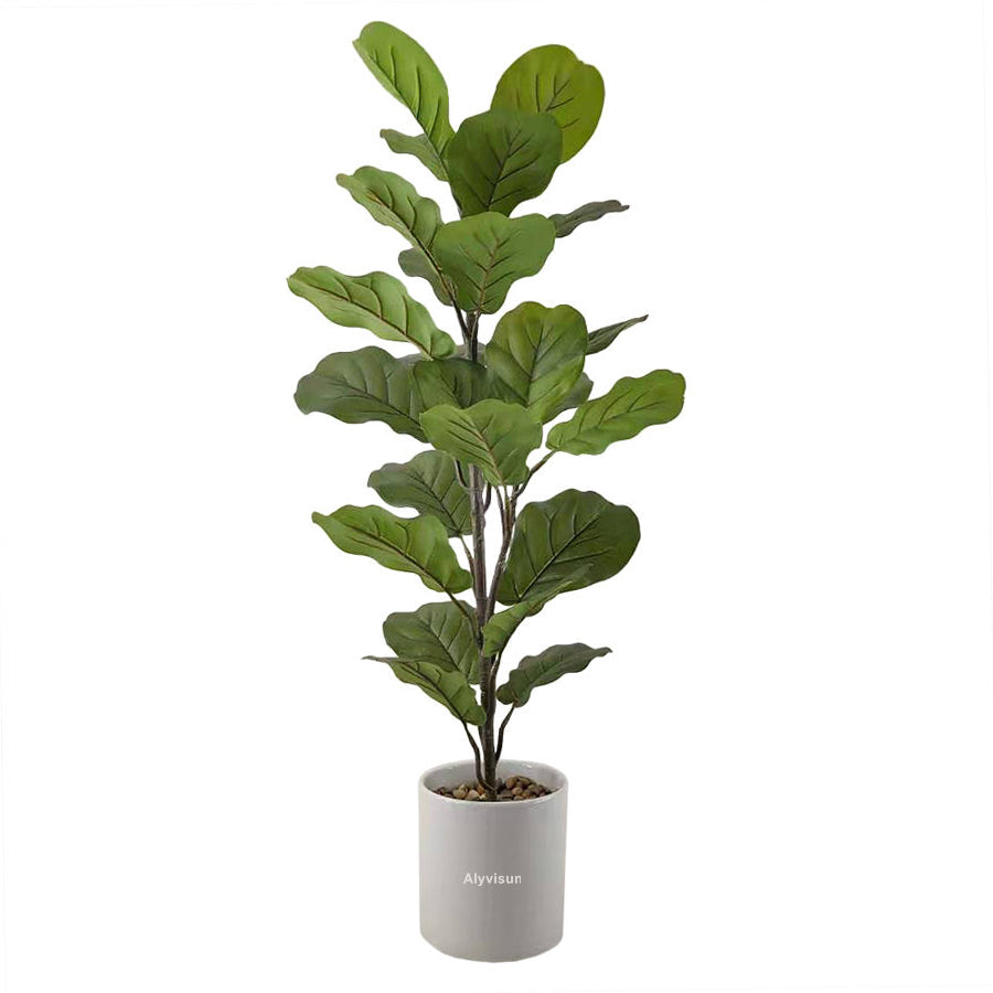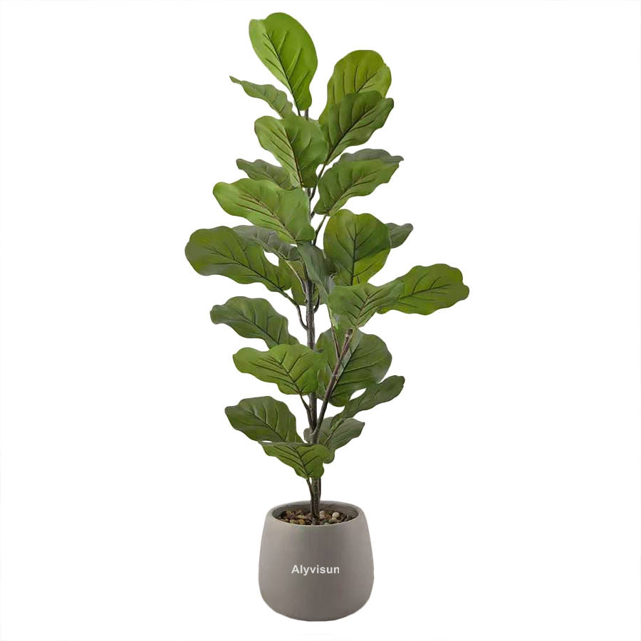 Artificial Fiddle Leaf Fig Tree, Faux Ficus Lyrata Plant with Realistic Leaves, Lifelike Home Decor Faux Tree in Stylish Pot for Indoor, Office, Living Room Decor