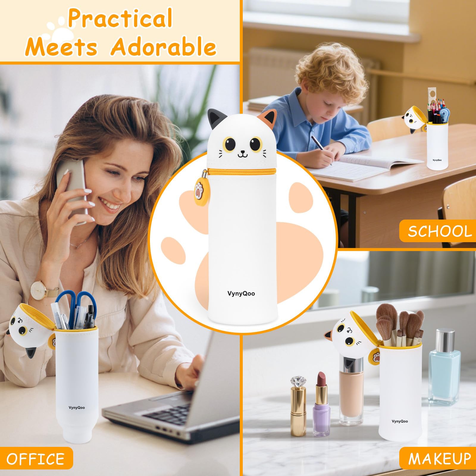 - [2-in-1– Pouch to Pen Holder]: With a simple pull, the bottom expands to transform the stand up pencil case into a table pen holder. A fun and practical solution that keeps your stationery organized and easy to access whether you're at home, school, or the office.