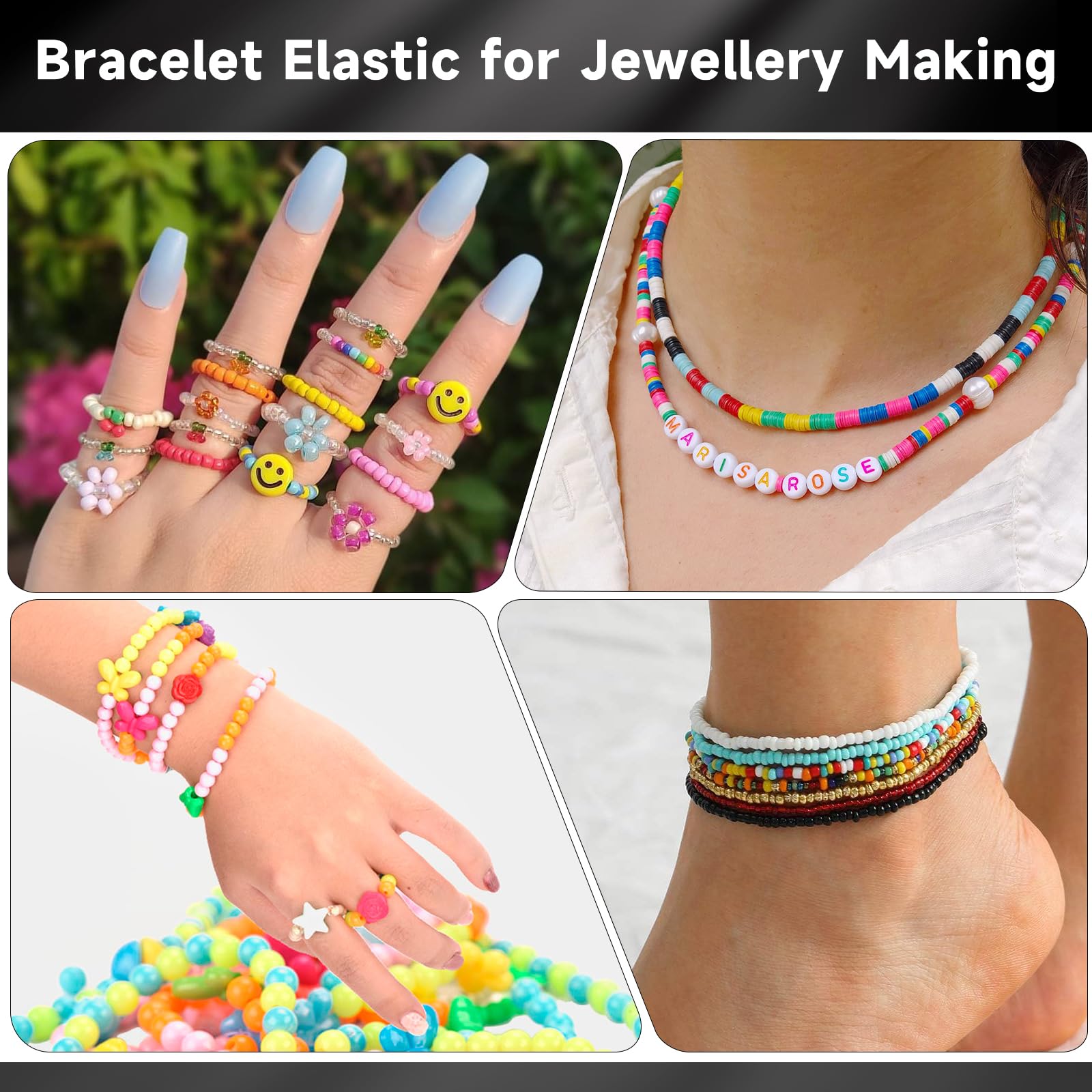 - 【Easy to Work With】:Elastic for jewellery making is designed for ease of use, making it convenient for threading beads and creating intricate designs. Its smooth texture allows for effortless stringing, knotting, and securing your jewelry pieces.